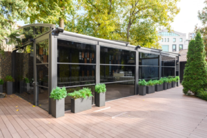Scegli un sistema di chiusura tipo ghigliottina per trasformare la terrazza in uno spazio utilizzabile tutto l’anno. Con un meccanismo di scorrimento verticale, questo sistema moderno ti consente di controllare la ventilazione e protegge efficacemente contro le intemperie, mantenendo la terrazza luminosa e accessibile.