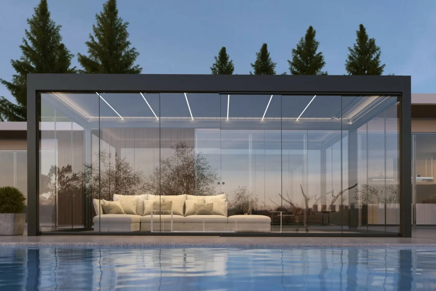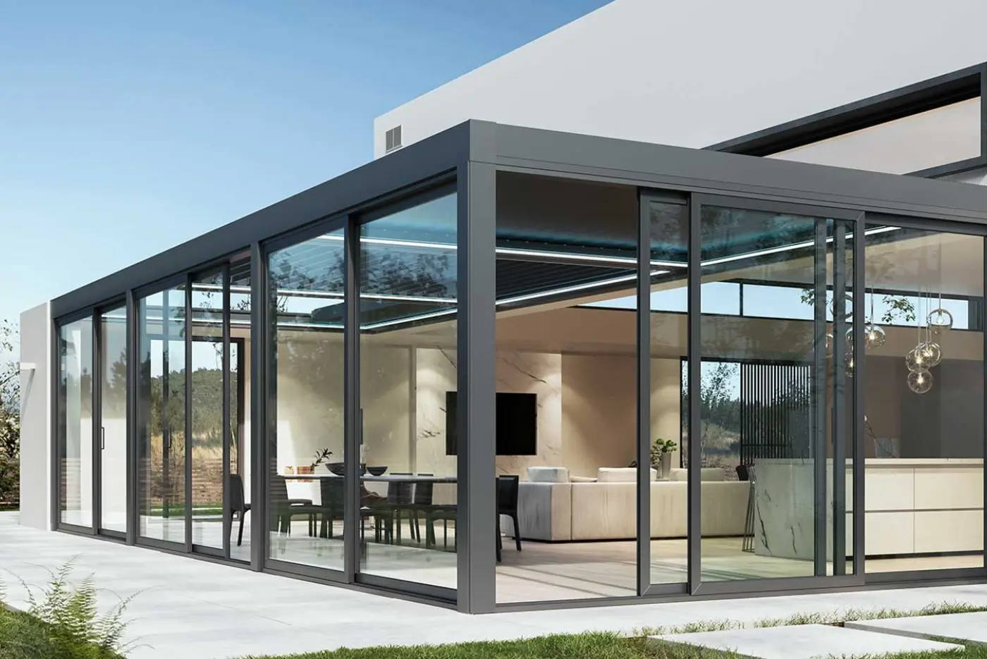 Le pergole bioclimatiche possono essere equipaggiate con sensori di sole, vento e pioggia. In caso di pioggia o vento forte, le lamelle si chiudono automaticamente, e quando il sole ritorna, si riaprono, regolando l’angolazione per offrire sempre il massimo comfort. Oltre a questa funzionalità, le pergole bioclimatiche possono essere dotate di accessori aggiuntivi, trasformandosi in veri e propri giardini d’inverno, pronti per l’uso in ogni stagione.