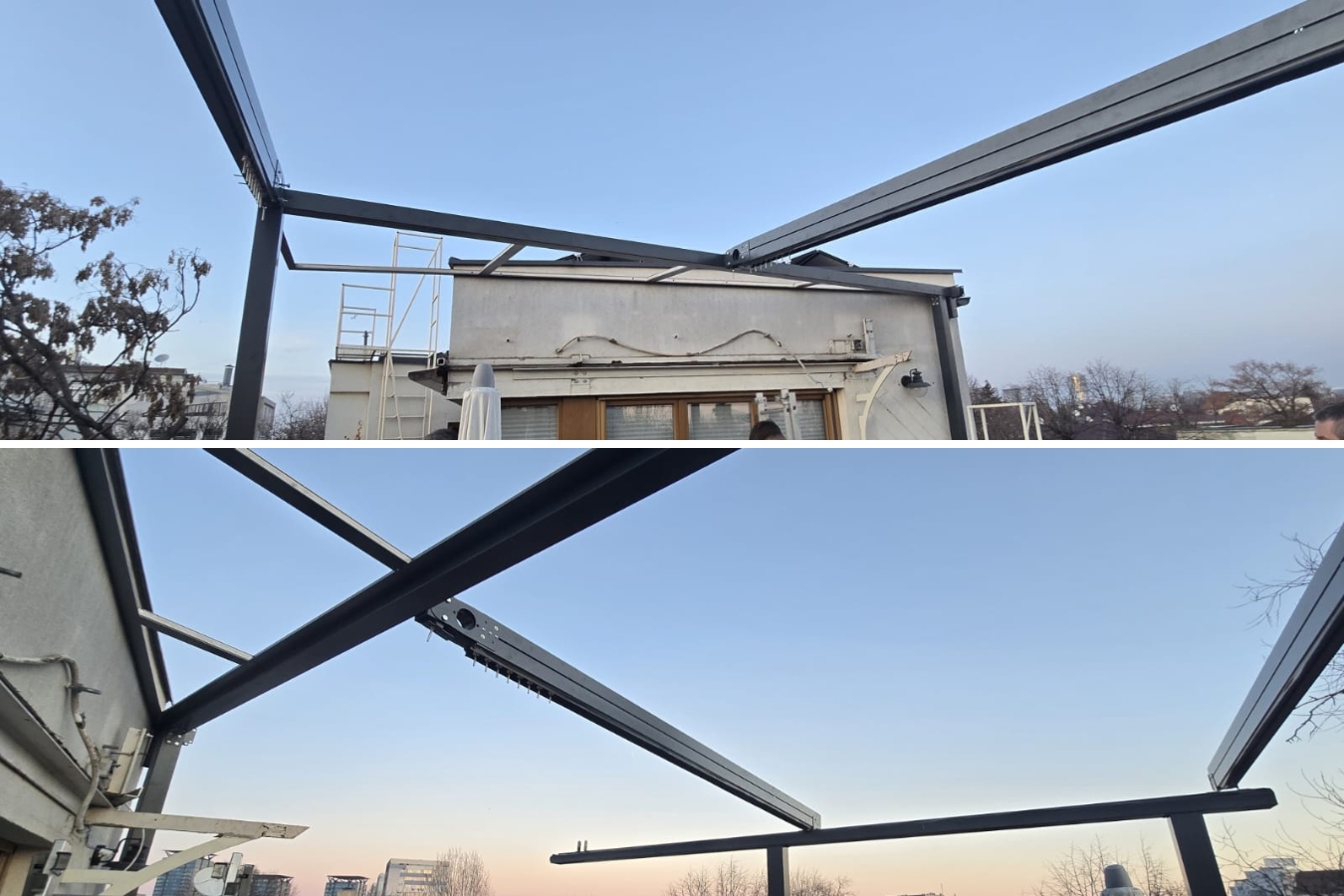 Pergola retractabilă, cu dimensiuni atipice de 5×4 metri, a fost proiectată pentru a se integra armonios în designul arhitectural al locației, oferind un spațiu optim pentru relaxare și utilizare practică.